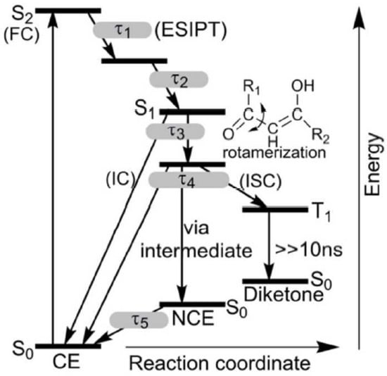 Energy diagram for excitation of 2-acetylindan-1,3-dione. Taken from Ref. [75], licensed under a Creative Commons Attribution (CC BY) license.