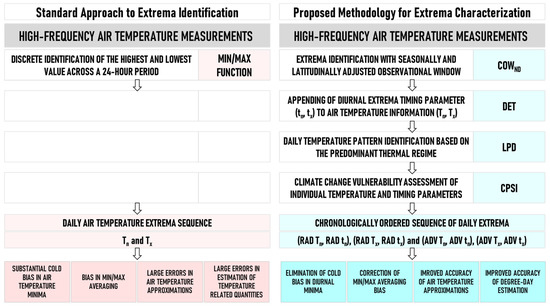 This entry proposes the implementation of the elements of new methodology into the practice of the systematic identification of daily extrema from large temperature data sets. Secondly, it suggests the re-evaluation of temperature observational practices with the goal of adopting the idea of the systematic acquisition of daily extrema timing along with air temperature recording.