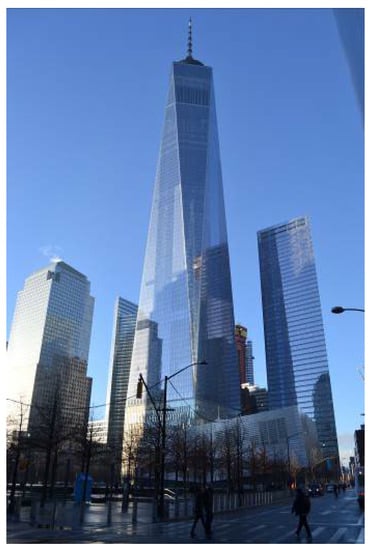 - Parker, D.; Wood, A. One World Trade Center, New York, USA. In The Tall Buildings Reference Book; Routledge: Boca Raton, FL, USA, 2013; pp. 496–501. [Google Scholar]