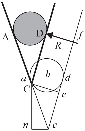 A most interesting example is due to Johann Bernoulli related to the situation of Figure 4. The goal was to find the impression that each of the two inclined planes CA and CD receives from the ball. Bernoulli determined an at a time, thinking of replacing one of two planes with a force, for example, the plane CD with a force R orthogonal to it. This is the classic approach in statics to replace a constraint with forces and apply the rules of equilibrium to the resulting system when the body is not constrained. Bernoulli applied their principle of energies to evaluate R [41] (Letter from Johann Bernoulli to Pierre Varignon, 26 February 1715).