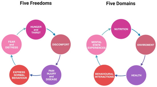 - Mellor, D.J.; Beausoleil, N.J. Extending the ‘Five Domains’ model for animal welfare assessment to incorporate positive welfare states. Anim. Welf. 2015, 24, 241–253. [Google Scholar] [CrossRef]