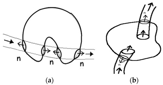 Maxwell then presents very precisely the well-known concept of fluid flow rate through a surface of area of the tube of fluid motion, whatever its orientation with respect to the lines of flow, as well as the concepts of flow through a generic fixed closed surface, source (where a flow originates) and sink (where a flow extinguishes), as illustrated in Figure 2.