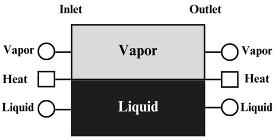 Figure 1 shows a distillation module, which is equal to a distillation stage where vapor and liquid reach equilibrium by coming into contact with each other. Each uniquely defined subspace is assigned to a distillation module by discretizing the liquid composition space in a mixture. The proposed framework assumes that a vapor–liquid equilibrium is attained in each module. Additionally, since the liquid composition, pressure, and thermodynamic state (i.e., saturated liquid) are known in advance for each subspace, the molar enthalpy and the vapor composition in each phase are uniquely defined.