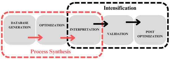 Figure 4 shows how different software programs are integrated into the framework to find novel and intensified process structures.