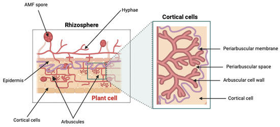 - Ahammed, G.J.; Hajiboland, R. Introduction to Arbuscular Mycorrhizal Fungi and Higher Plant Symbiosis: Characteristic Features, Functions, and Applications. In Arbuscular Mycorrhizal Fungi and Higher Plants: Fundamentals and Applications; Ahammed, G.J., Hajiboland, R., Eds.; Springer Nature: Singapore, 2024; pp. 1–17. ISBN 978-981-9982-20-2. [Google Scholar]