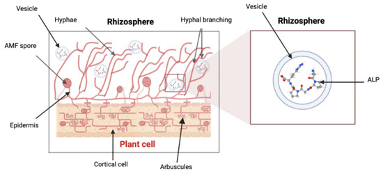 | Vesicle | Serve as storage reservoirs for phosphatases, lipids, and carbohydrates. | Store and transport Pi acquired by AMF from soil to the plant host. | Enhance Pi transfer from AMF to the plant root cells within vesicle structures. Allows access to Pi more efficiently. | [7,49,50] |