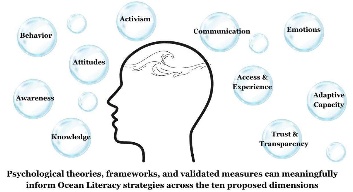Ocean Literacy (OL) can be broadly defined as a framework for understanding the complex and evolving relationships between people and the ocean. It is increasingly recognized as a vital component of marine conservation and sustainability efforts. OL is inherently interdisciplinary, and psychology, while being a particularly relevant field, remains an underutilized field in this space. This paper demonstrates how psychological theories, frameworks, and validated measures can meaningfully inform OL strategies across its ten proposed dimensions: knowledge, awareness, attitudes, behavior, activism, communication, emotional connections, access and experience, adaptive capacity, and trust and transparency.