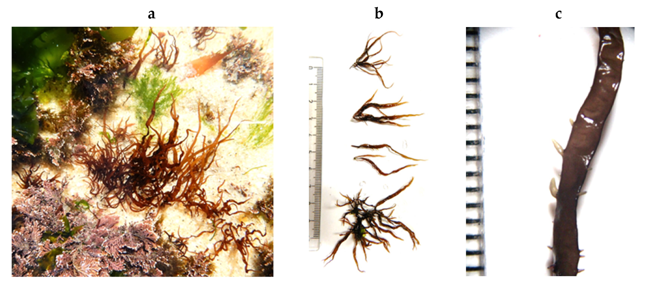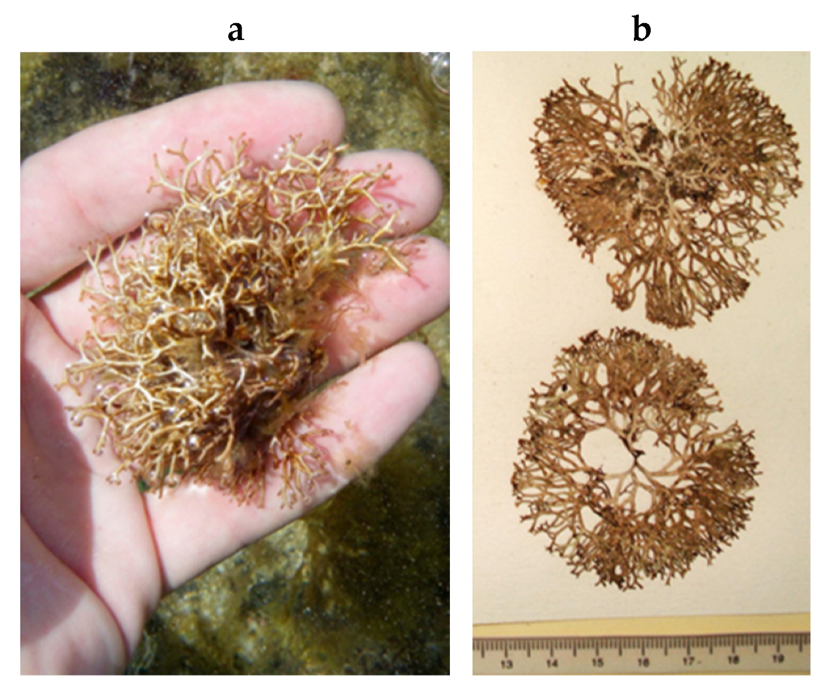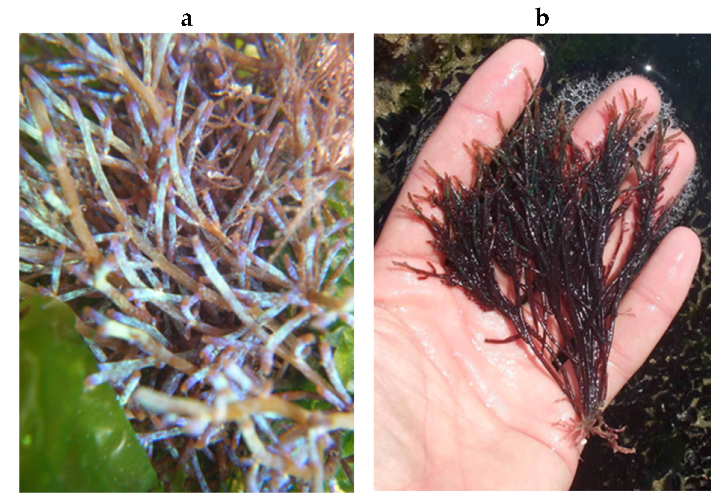 Habitat: his species thrives on rocks and in shady pools, extending from the lower intertidal zone to the subtidal region. It also grows epiphytically on Laminaria hyperborea stipes.