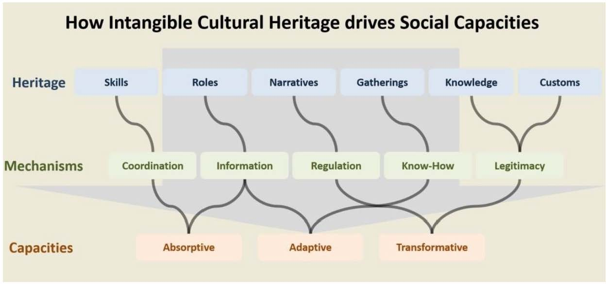 ICH can provide communities with the cultural resources, traditional knowledge, and robust social structures necessary to navigate disruptions, adapt to change, and recover effectively from adversity, thereby building enduring societal resilience.