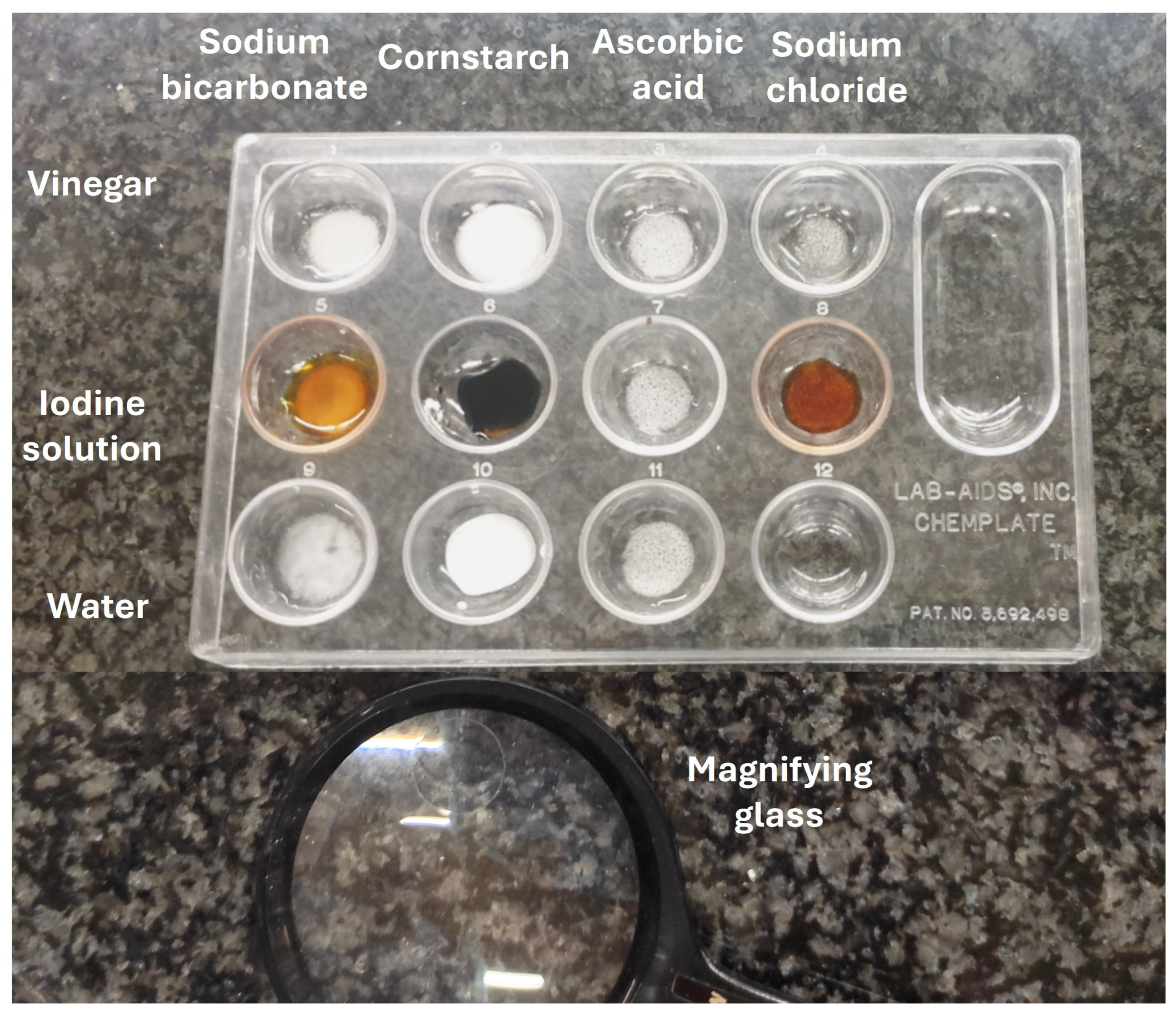 - Oliver-Hoyo, M.; Allen, D.; Solomon, S.; Brook, B.; Ciraolo, J.; Daly, S.; Jackson, L. Qualitative analysis of fourteen white solids and two mixtures using household chemicals. J. Chem. Educ. 2001, 78, 1475–1478. [Google Scholar] [CrossRef]