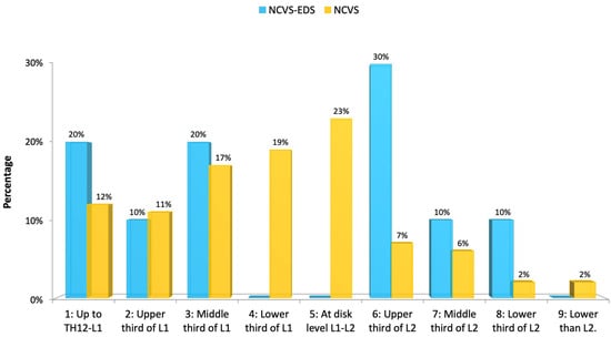 The purpose of this publication is fourfold. First, to present a retrospective study of the clinical manifestations and imaging characteristics found in patients with NCVS associated with EDS and to compare them with a control group of 373 patients affected by NCVS, as they are described in another article []. Second, to propose an aetiopathogenic mechanism for NCVS in EDS patients. Third, to analyse postoperative changes in patients with NCVS associated with EDS after undergoing sectioning of the filum terminale (SFT). Fourth, to highlight the appearance of an unpleasant psychological phenomenon, the “cervical dislocation panic syndrome,” which affects some patients.