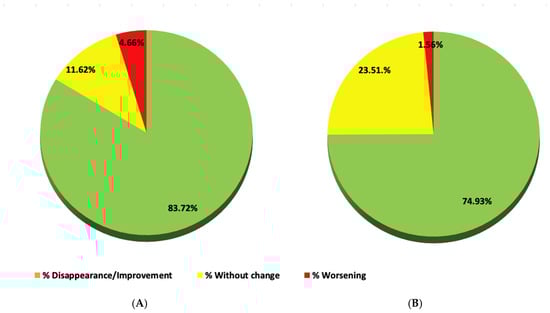 Improvement/disappearance of almost all the mentioned symptoms, with the exception of paresis and involuntary movements of all the extremities falling asleep, which did not change. On physical examination, the pain upon pressure (cervical, thoracic, and lumbar regions), the temperature hypoaesthesia, and the alteration of the deep tendon reflexes had disappeared, and the Babinski’s sign had partially improved. The rest of the signs remained unchanged or were not assessed.