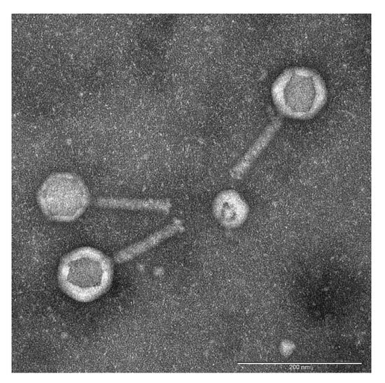 3.1. Isolation of Bacteriophages, Plaque Morphology and Electron Microscopy