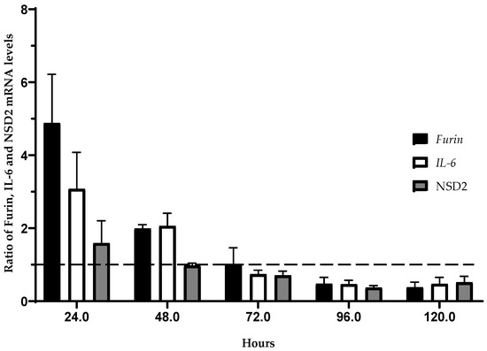 3.2.2. Kinetics of Furin, IL-6, and NSD2 Gene Expression
