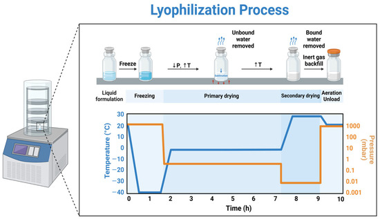 - Arora, S.; Dash, S.K.; Dhawan, D.; Sahoo, P.K.; Jindal, A.; Gugulothu, D. Freeze-drying revolution: Unleashing the potential of lyophilization in advancing drug delivery systems. Drug Deliv. Transl. Res. 2024, 14, 1111–1153. [Google Scholar] [CrossRef] [PubMed]