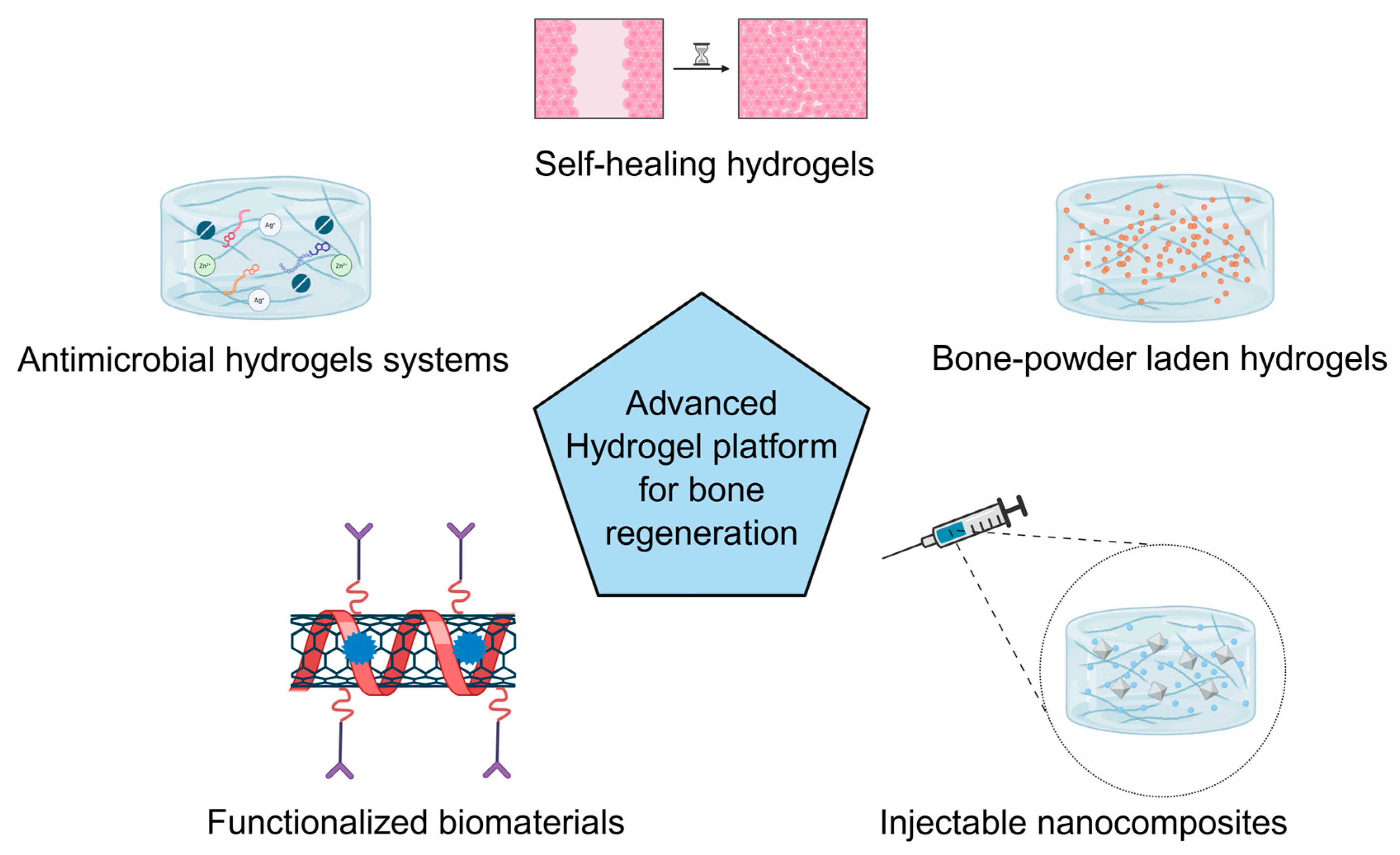 APA StylePetraglia, F. M., Giordano, S., & Santoro, A. (2026). Functional Hydrogels in Bone Tissue Engineering: From Material Design to Translational Applications. Biologics, 6(1), 2. https://doi.org/10.3390/biologics6010002