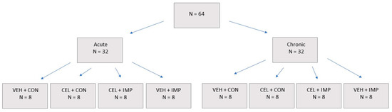 Sixty-four total mice were used for the study, with N = 8 randomly allocated to each group.