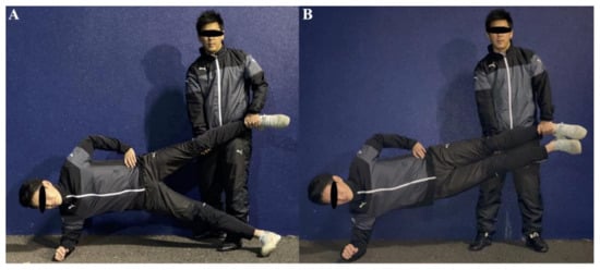 Factors related to the development of groin pain have been reported to include decreased hip abduction range of motion (ROM) [13], decreased adductor muscle strength [14,15], and trunk muscle weakness [16]. This might explain why the Copenhagen adduction exercise (CAE) is effective as a preventive exercise for groin pain, possibly due to increased eccentric adductor muscle strength reported when strengthening the hip adductor muscles [17], which was associated with reduced injury occurrence [18,19]. A benefit of the CAE is that it does not require expensive equipment and can be applied almost anywhere.