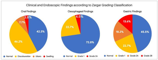 Endoscopy findings were graded according to the Zargar classification of corrosive injury (Table 1). Abnormalities were found in 69% of the 22 reported UGIEs.