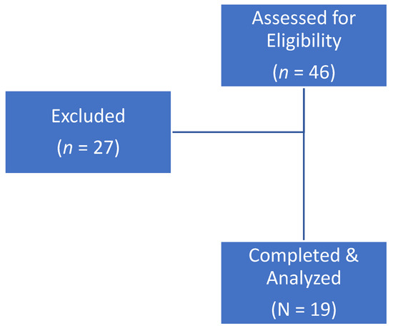 A total of 46 Veterans were approached to participate in this study, and 41.3%, or 19, consented. Of the 19 who consented, 100% completed this study. Veterans were contacted via telephone to confirm interest in this study and scheduled for a single appointment to complete the study. Veterans were recruited through flyers posted throughout the Tibor Rubin VA Medical Center in Long Beach, California. Residual funding was identified from the fourth authors’ research funds, and participants received USD 20 as compensation for completing this study. Recruitment emails were regularly sent to clinicians explaining this study and asking for referrals.
