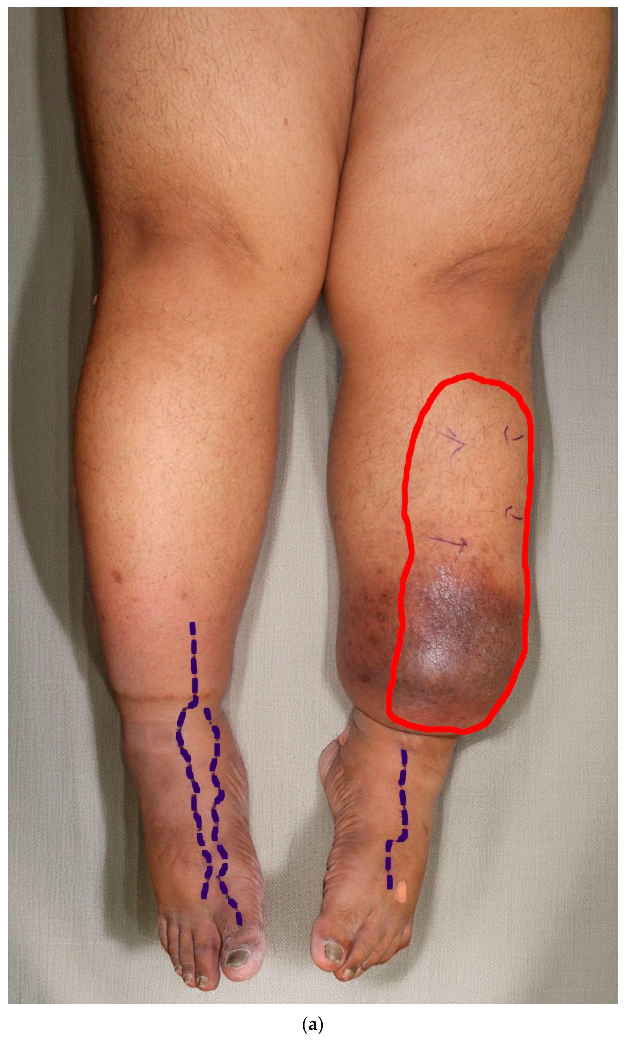 - Mihara, M.; Hara, H.; Murai, N.; Todokoro, T.; Iida, T.; Narushima, M.; Koshima, I. Severe lymphedema caused by repeated self-injury. Lymphology 2011, 44, 183–186. [Google Scholar]