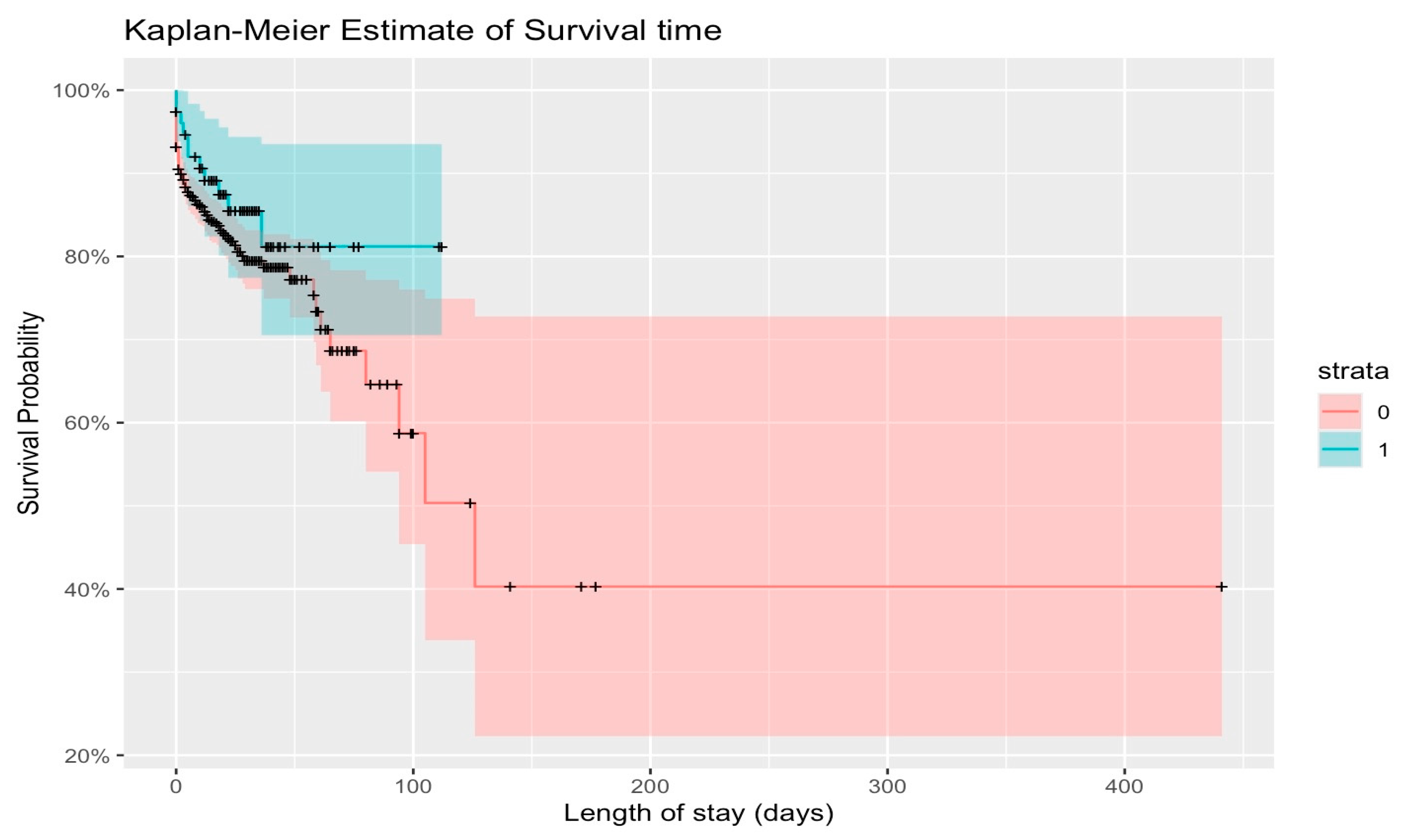 | LOS (in days) median [IQR] | 14 (6–25) | |