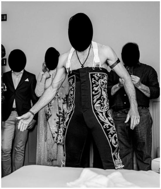 The subject of the study is a professional bullfighter (age: 39 years; height: 182.0 cm; and body weight: 73.5 kg). He has 20 years of experience as a professional bullfighter, covering more than 430 bullfights. In this study, heart rate (HR) monitoring was performed using a Polar Verity Sense device (Polar Electro, Kempele, Finland), located on the bullfighter’s left arm. The device was attached while the bullfighter was dressing in the “traje de luces” (the hotel suite used during the bullfight). Heart rate monitoring was used as a descriptive clinical tool to document physiological changes throughout the event. The HR recording began the moment the bullfighter dressed at the hotel (see Figure 1) and concluded on his return to the hotel after the bullfight, with a total recording time (TT) of 4 h and 6 min (see Figure 2).