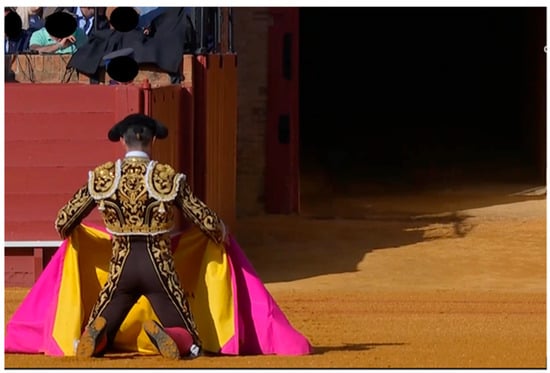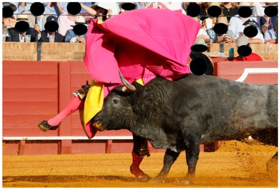 During bullfighting, bullfighters must adapt to the unpredictable and variable behavior of the bull [6,8], a conditioning factor that influences the intensity of the fight [7] and establishes this variable as the main uncertainty in bullfighting activity [6]. The changing nature of the bullfighter’s responses, associated with the bull’s behavior, directly impacts the fighting method applied by the bullfighter [4,6], influencing concentration and decision-making. Injuries received during a bullfight can include goring (wounds caused by the bull’s horns) or a somersault, which can put a bullfighter’s life at risk. The degree of training and level of experience of bullfighters are key factors in avoiding possible injuries during a fight [6,9,10].