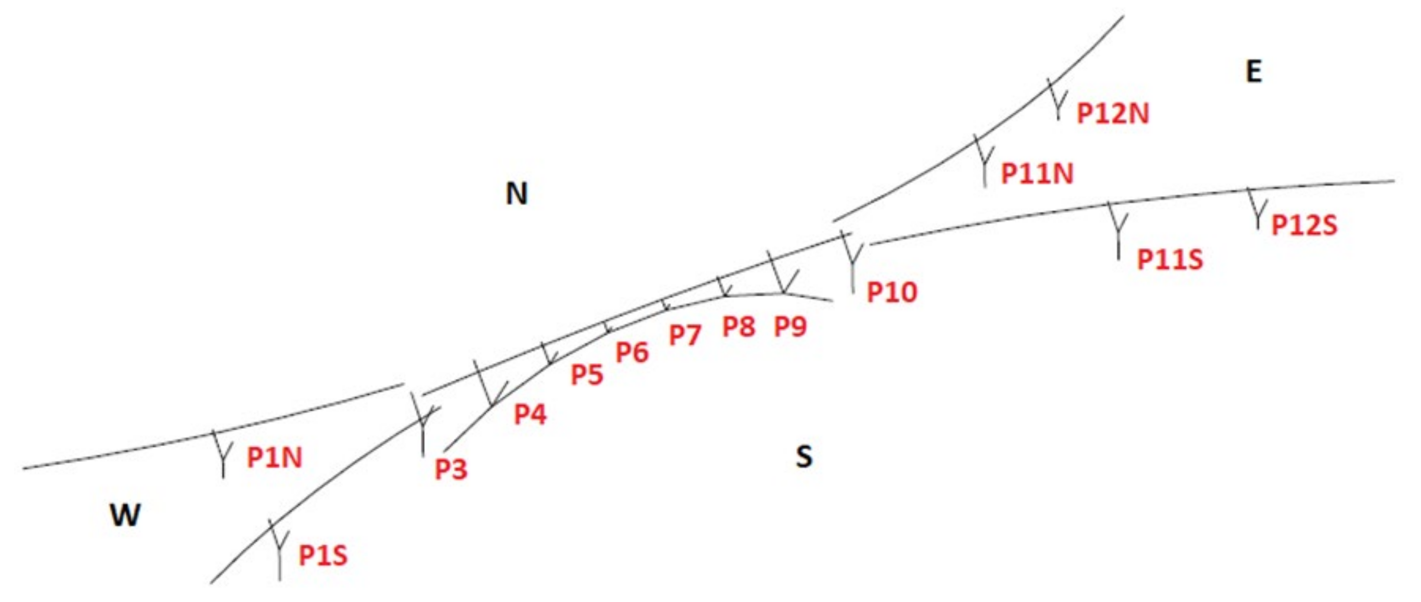 The four OSP methods were programmed in MATLAB and the mode shapes obtained from the modal analysis of the FE model were used as input data. Considering that translations in the longitudinal direction (Y-direction) of the footbridge are almost null for the first five mode shapes, only two DOFs per node, corresponding to the vertical translation (Z-direction) and the lateral translation (X-direction), are considered in the analysis. Therefore, assuming that translations are constrained in 14 nodes due to the boundary conditions, 166 DOFs are candidates to be monitored.