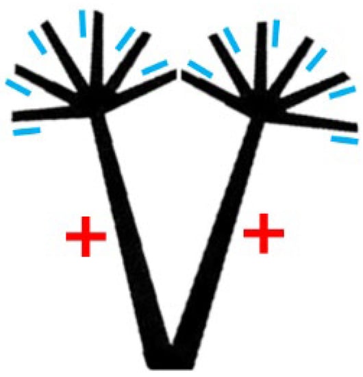 Fractal dipole. In each bifurcation point, multiple paths are branched off, and polarity is reversed.