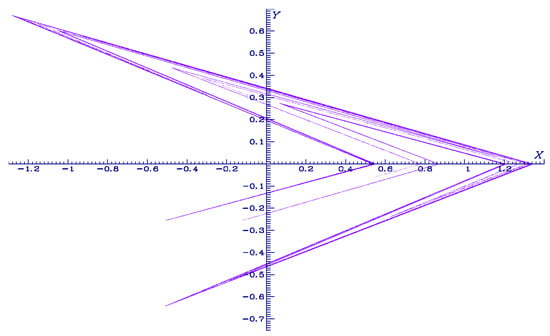- Botella-Soler, V.; Castelo, J.M.; Oteo, J.A.; Ros, J. Bifurcations in the Lozi map. J. Phys. A Math. Theor. 2011, 44, 305101. [Google Scholar] [CrossRef]