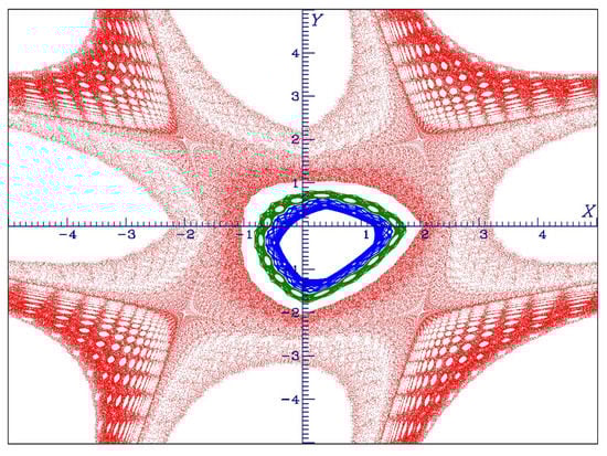 - Hénon, M. A two-dimensional mapping with a strange attractor. Commun. Math. Phys. 1976, 50, 69–77. [Google Scholar] [CrossRef]