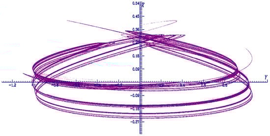 4.4.3. Case , Connected Hyperchaotic Attractor