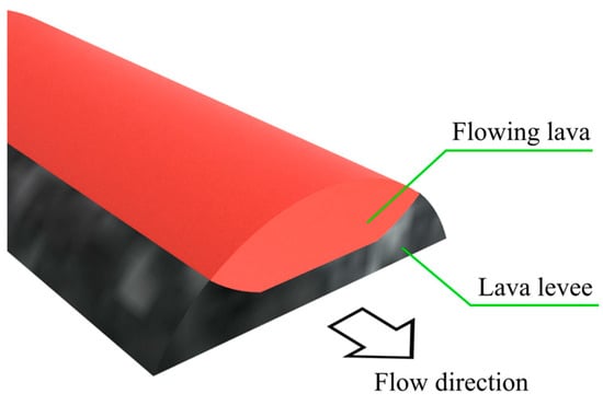 The lava levee is a levee-like structure. The outside and bottom of a lava flow are easily cooled and solidified. On the other hand, the inside lava flows without solidifying for a relatively long distance due to its low cooling rate. Because of differences in the cooling rate, a levee-like topography is formed. Figure 1 shows a schematic of a cross-section of a lava levee. The formation process of lava levees has a great influence on the flow direction of lava flows. Therefore, clarification of the formation process will improve the accuracy of predicting areas where lava flows.