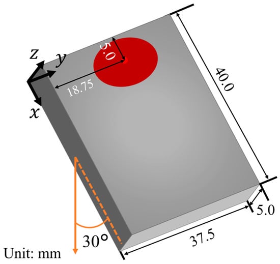 Figure 2 shows the computational domain. A stainless steel SUS304 flat plate with dimensions of mm () mm () mm () is placed on the -plane, and the angle between the -axis and the gravitational direction is set to . The center of the heat source used to generate the molten metal was set to () = ( mm, mm, mm).