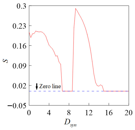 When the chemical coupling strength = 6.8, the S = 0 system reaches a complete synchronization state, and then an asynchronous state appears after a short period of synchronization. When = 14.9, it returns to full synchronization again, indicating that the strong nonlinearity of chemical synaptic coupling leads to the discontinuity of the system’s synchronization state.