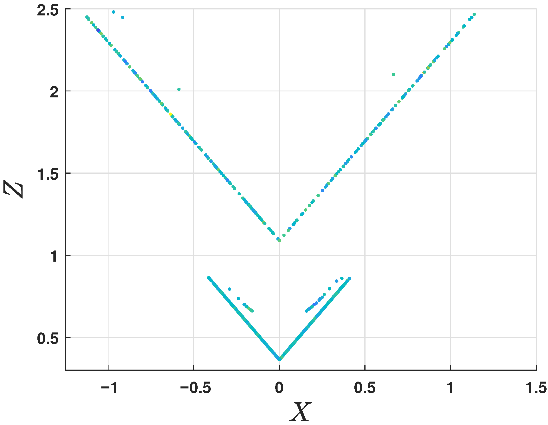 Figure 6, respectively. To analyze and verify the chaotic behavior of the system, for both cases, the intersections of the system trajectories with the