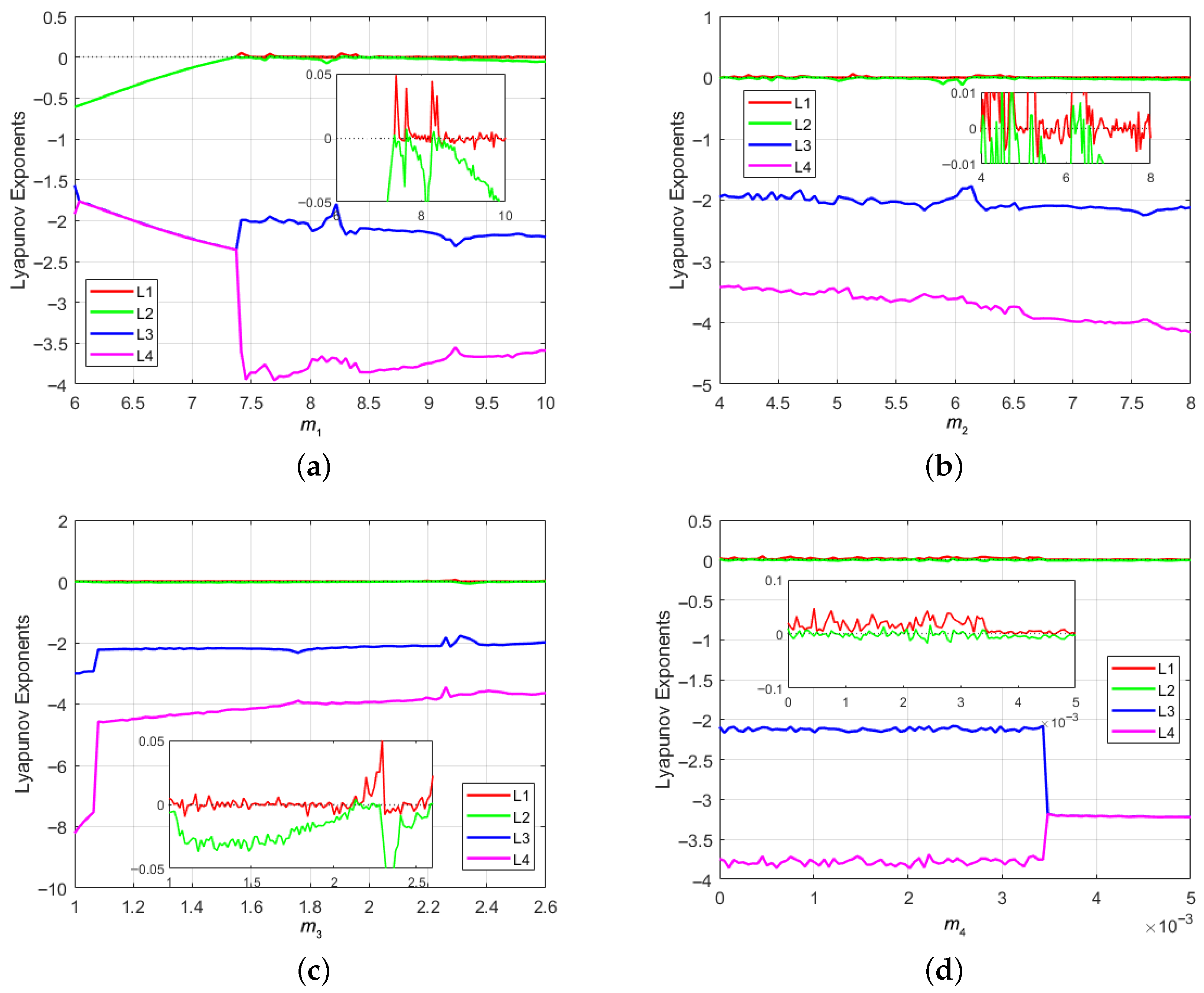 - Wolf, A.; Swift, J.B.; Swinney, H.L.; Vastano, J.A. Determining Lyapunov exponents from a time series. Phys. D Nonlinear Phenom. 1985, 16, 285–317. [Google Scholar] [CrossRef]
