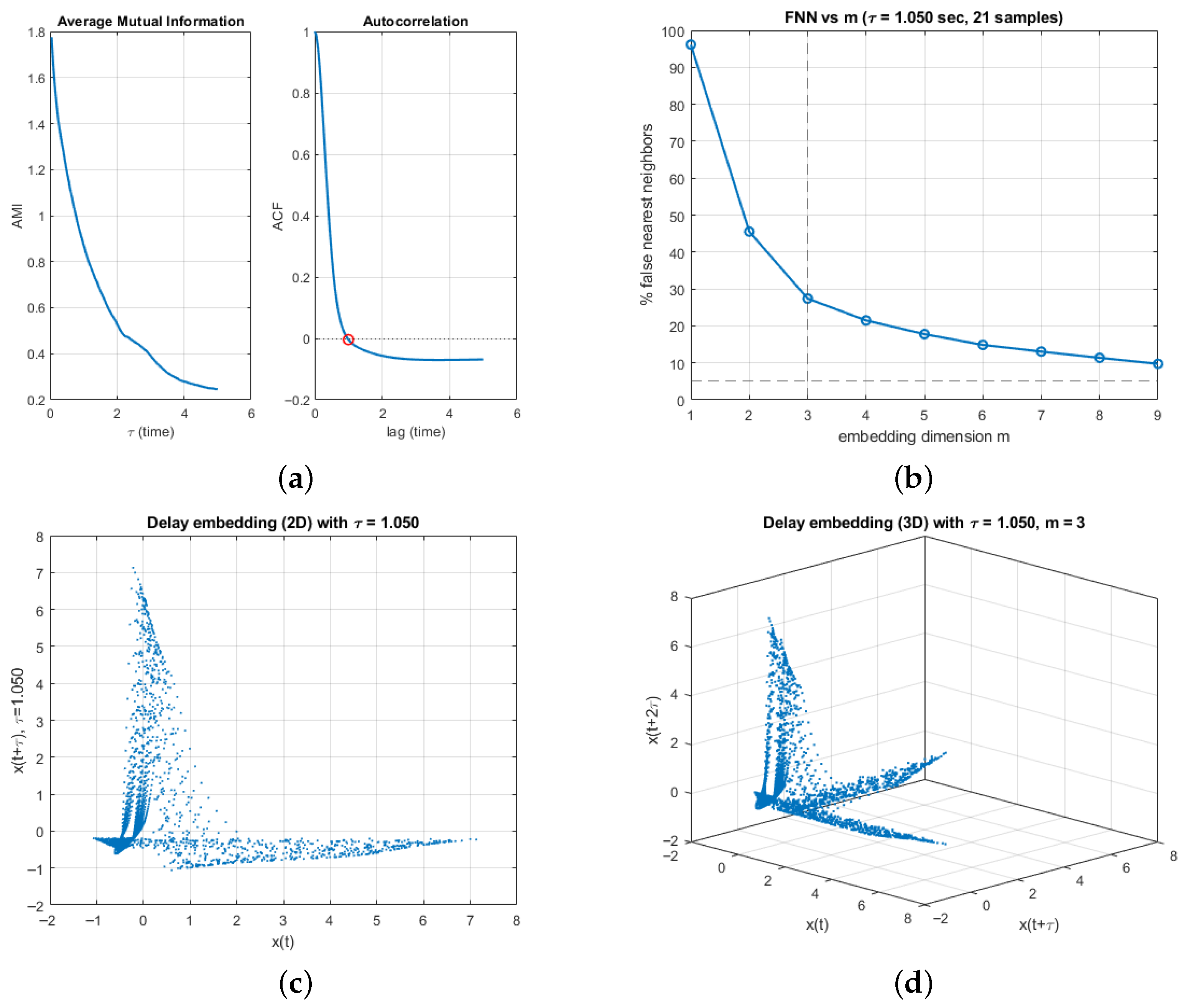 - Takens, F. Detecting strange attractors in turbulence. In Dynamical Systems and Turbulence, Warwick 1980; LectureNotes inMathematics; Rand, D., Young, L.S., Eds.; Springer: Berlin, Heidelberg, 1981; Volume 898, pp. 366–381. [Google Scholar] [CrossRef]