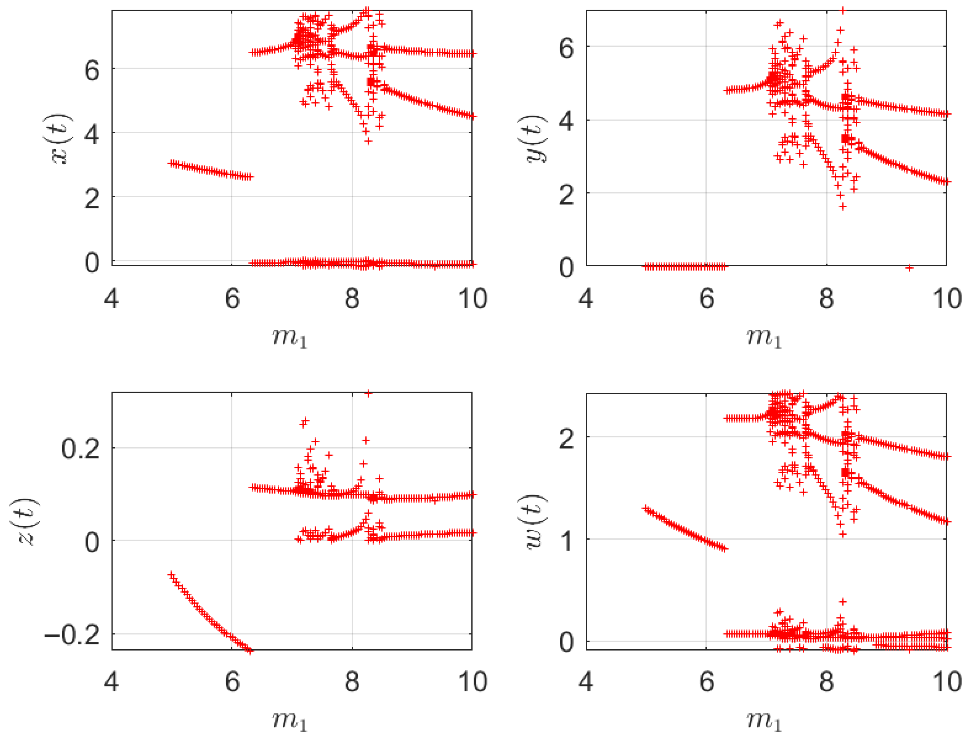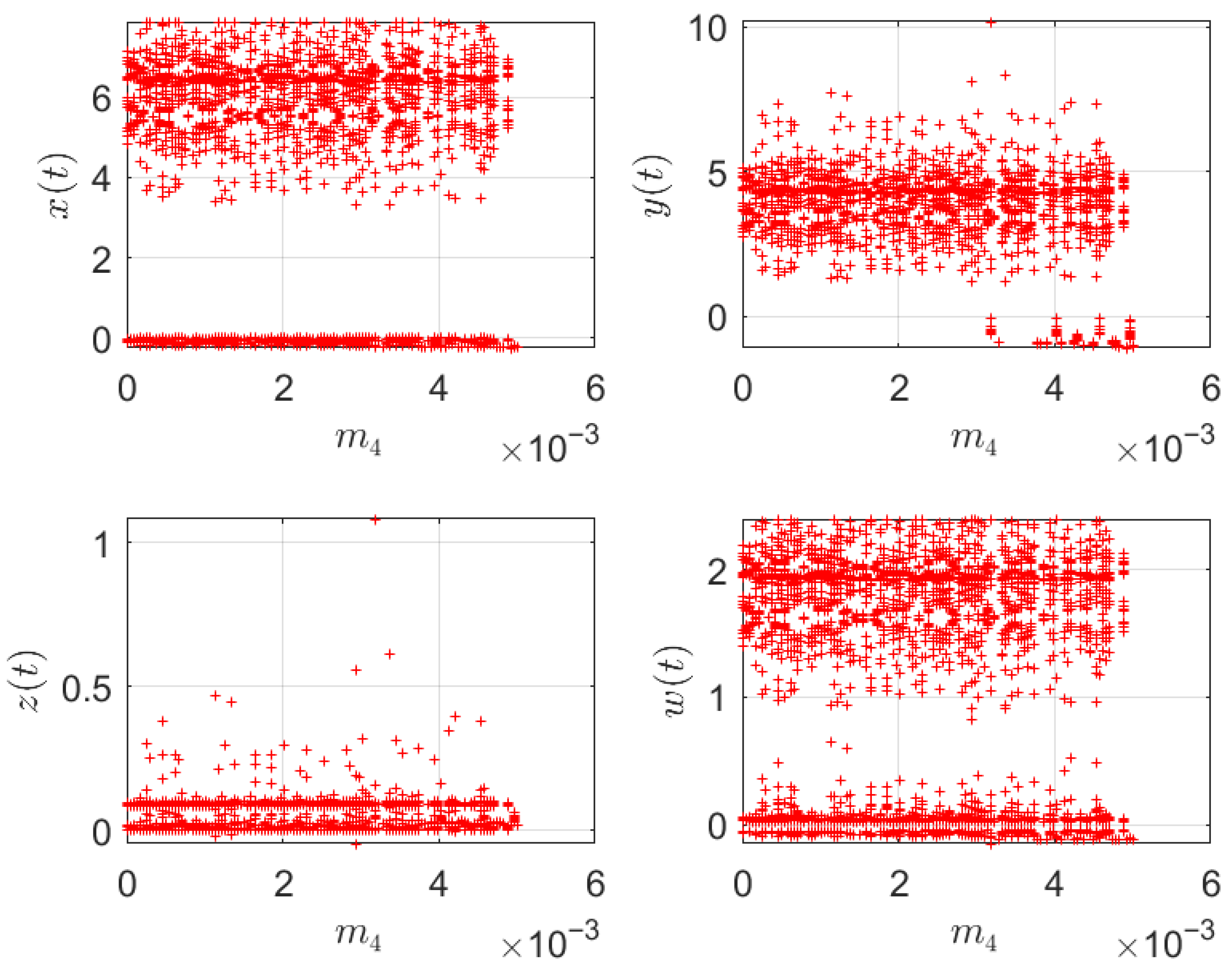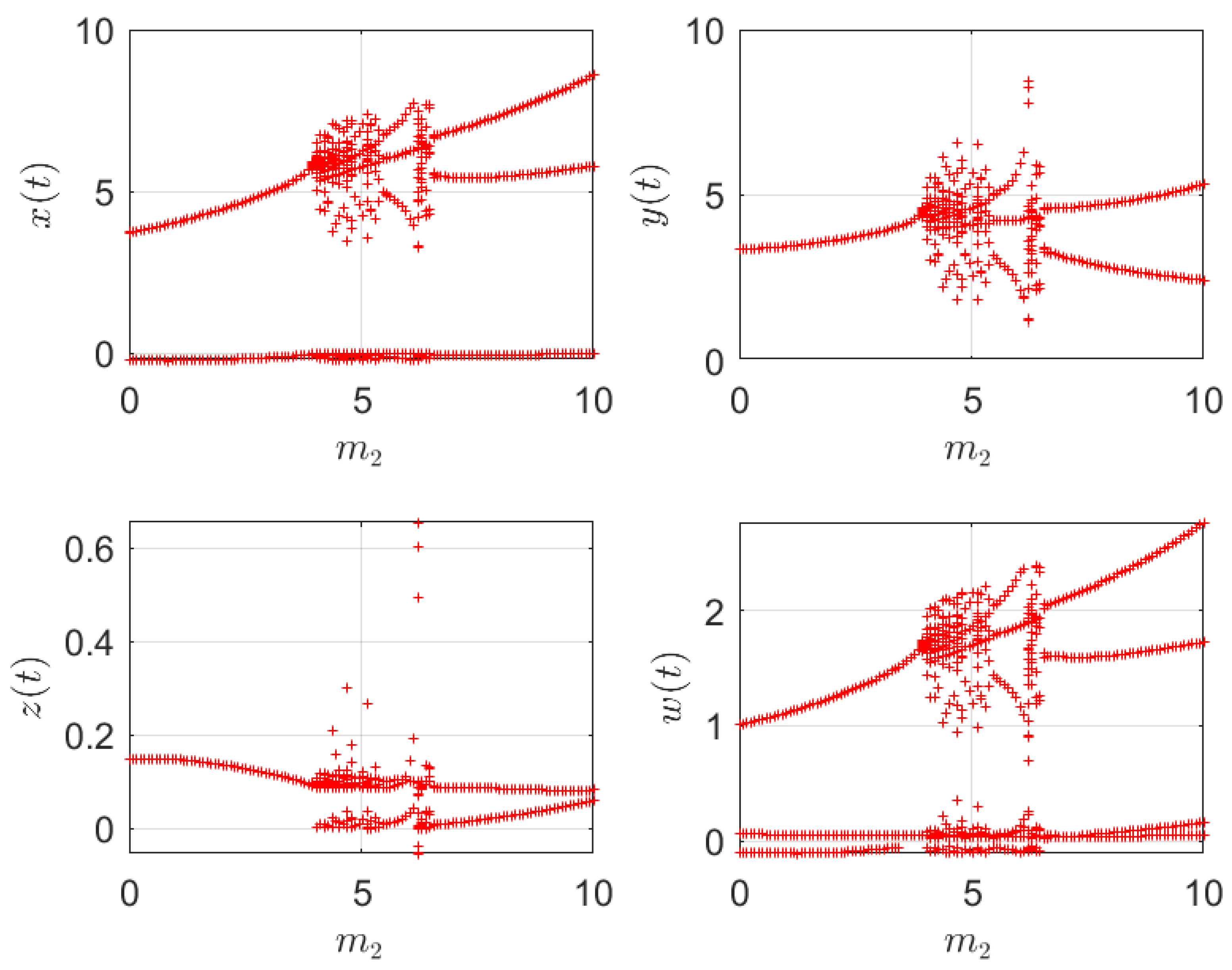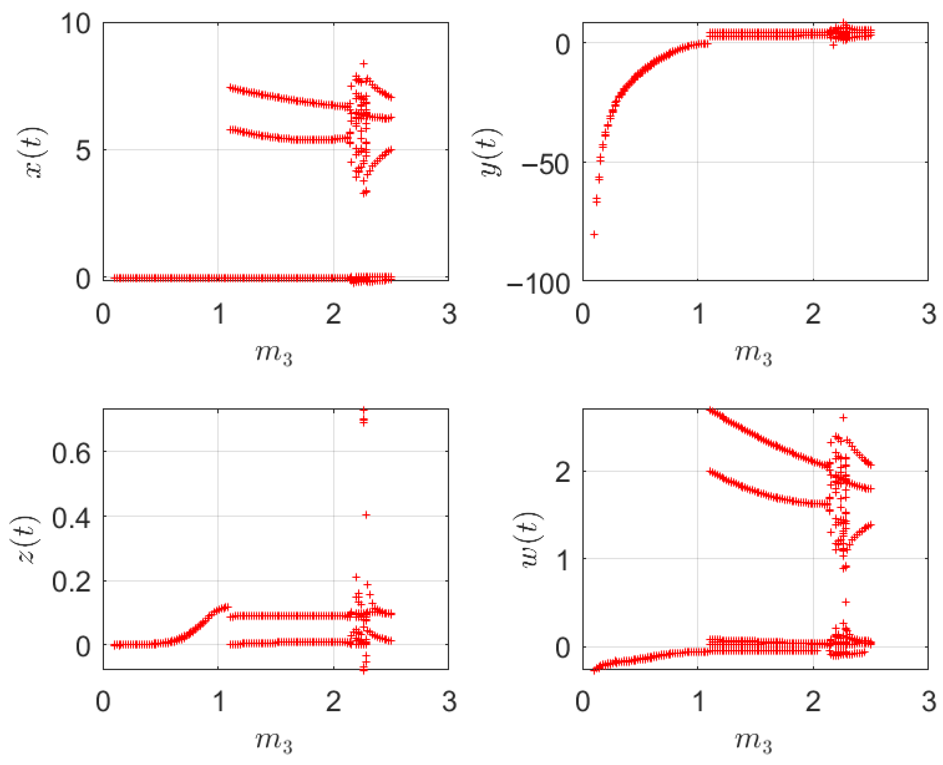 3.4. State Trajectories, Bifurcation Diagrams, and Phase Portraits