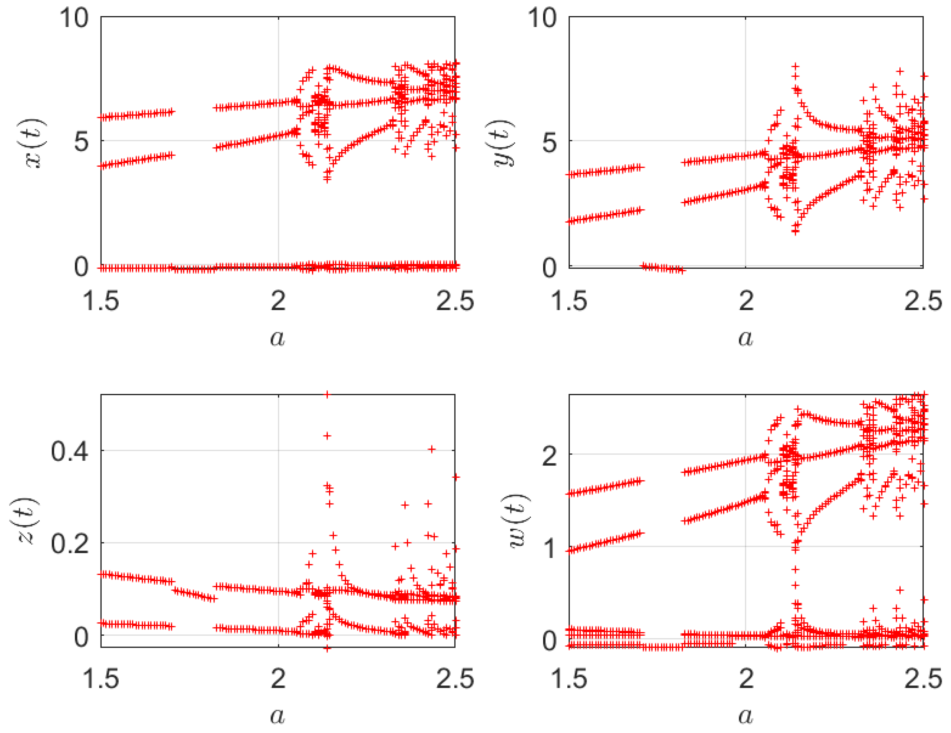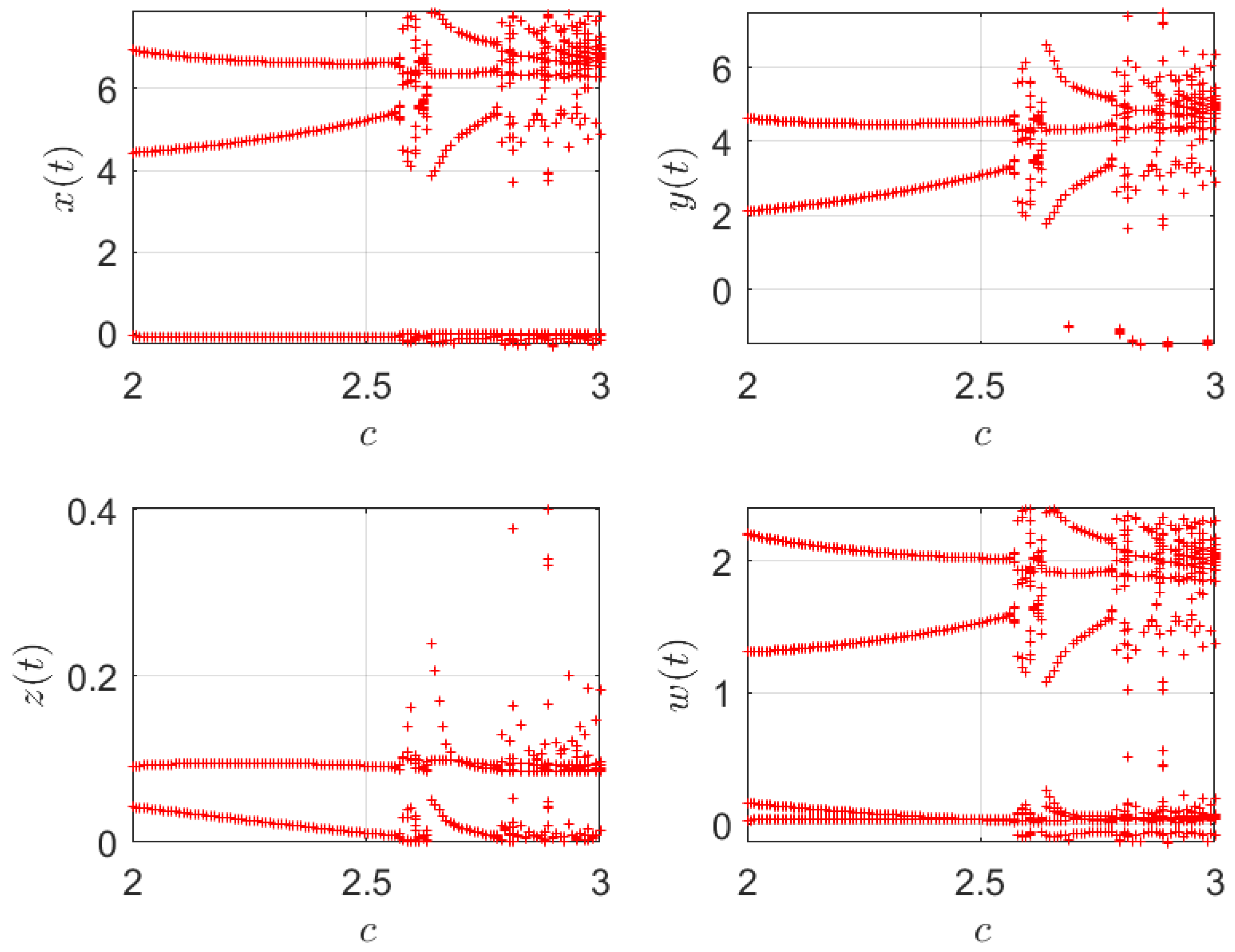 - Ma, J.H.; Chen, Y.S. Study for the Bifurcation Topological Structure and the Global Complicated Character of a Kind of Non-linear Finance System (II). Appl. Math. Mech. 2001, 22, 1236–1242. [Google Scholar]