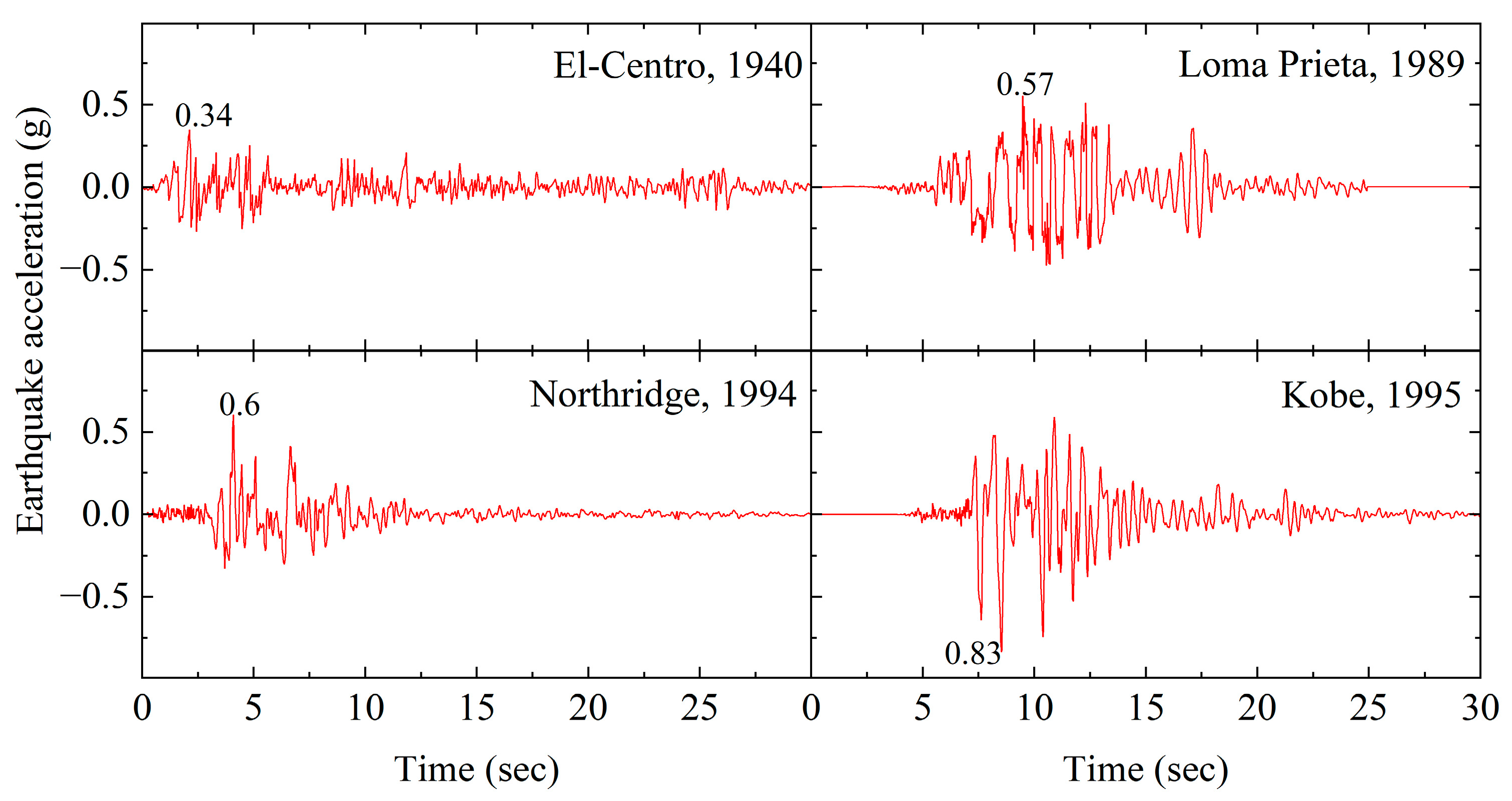 - Clough, R.W.; Penzien, J. Dynamics of Structures, 3rd ed.; Computers and Structures: Berkeley, CA, USA, 2003. [Google Scholar]