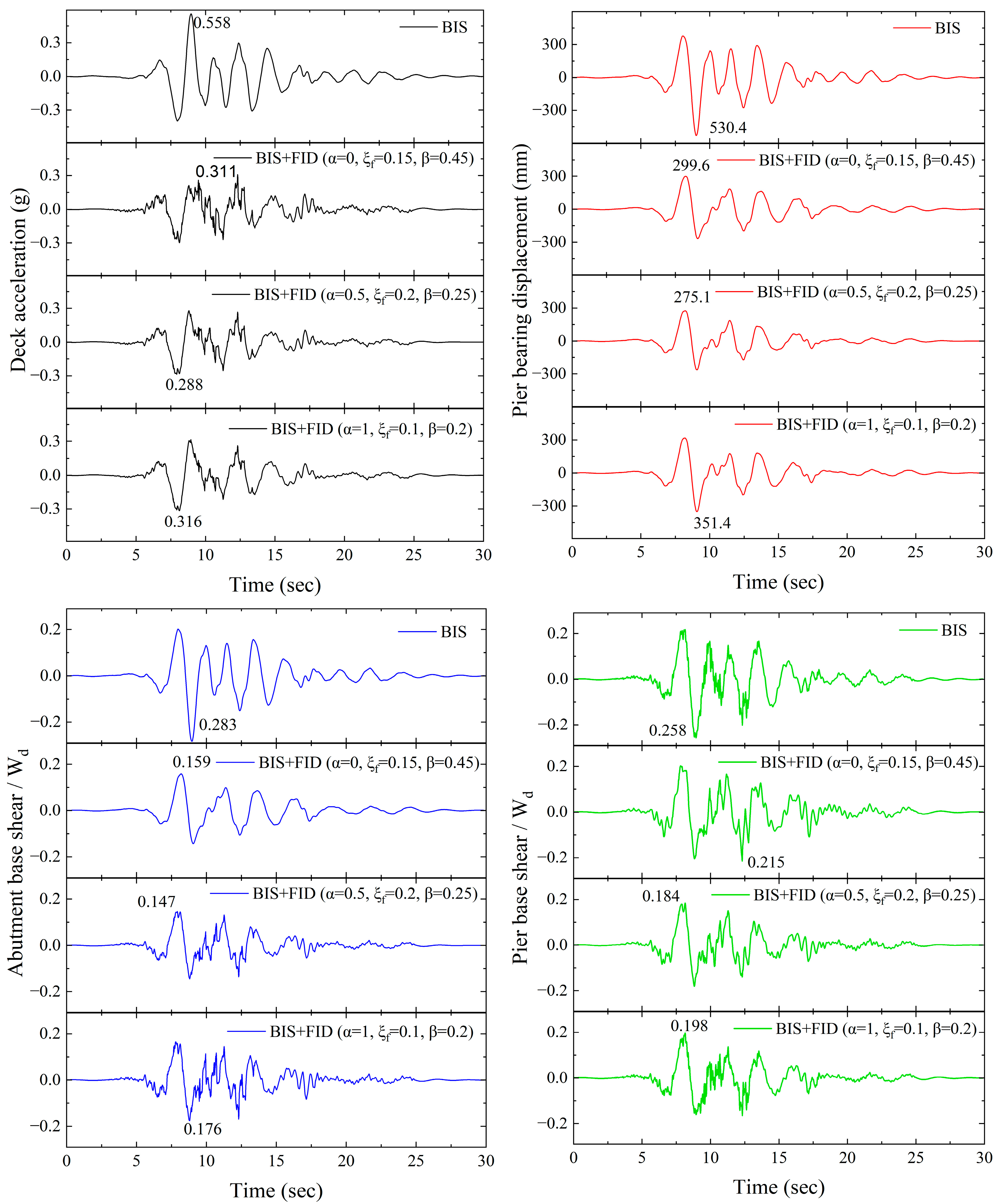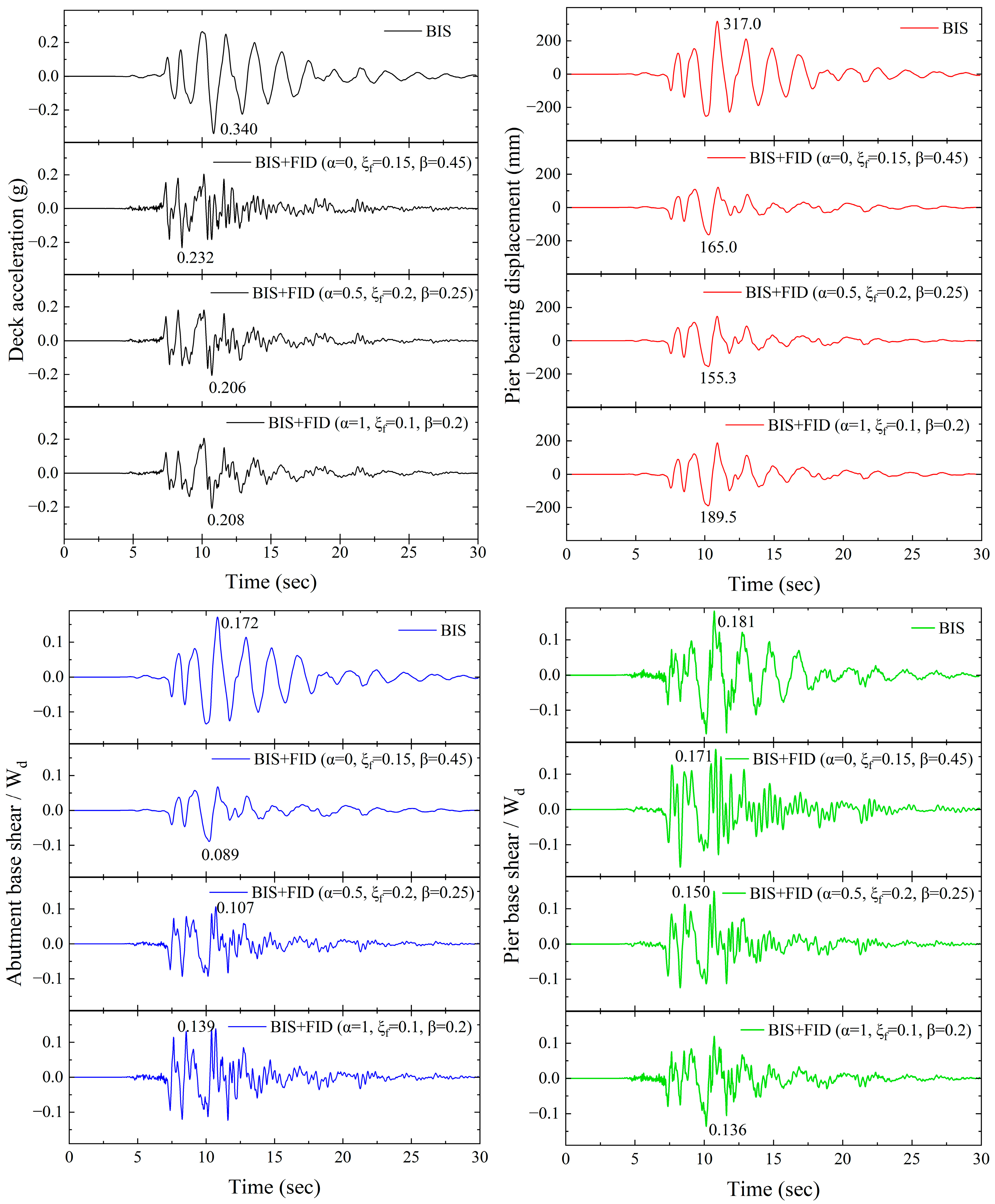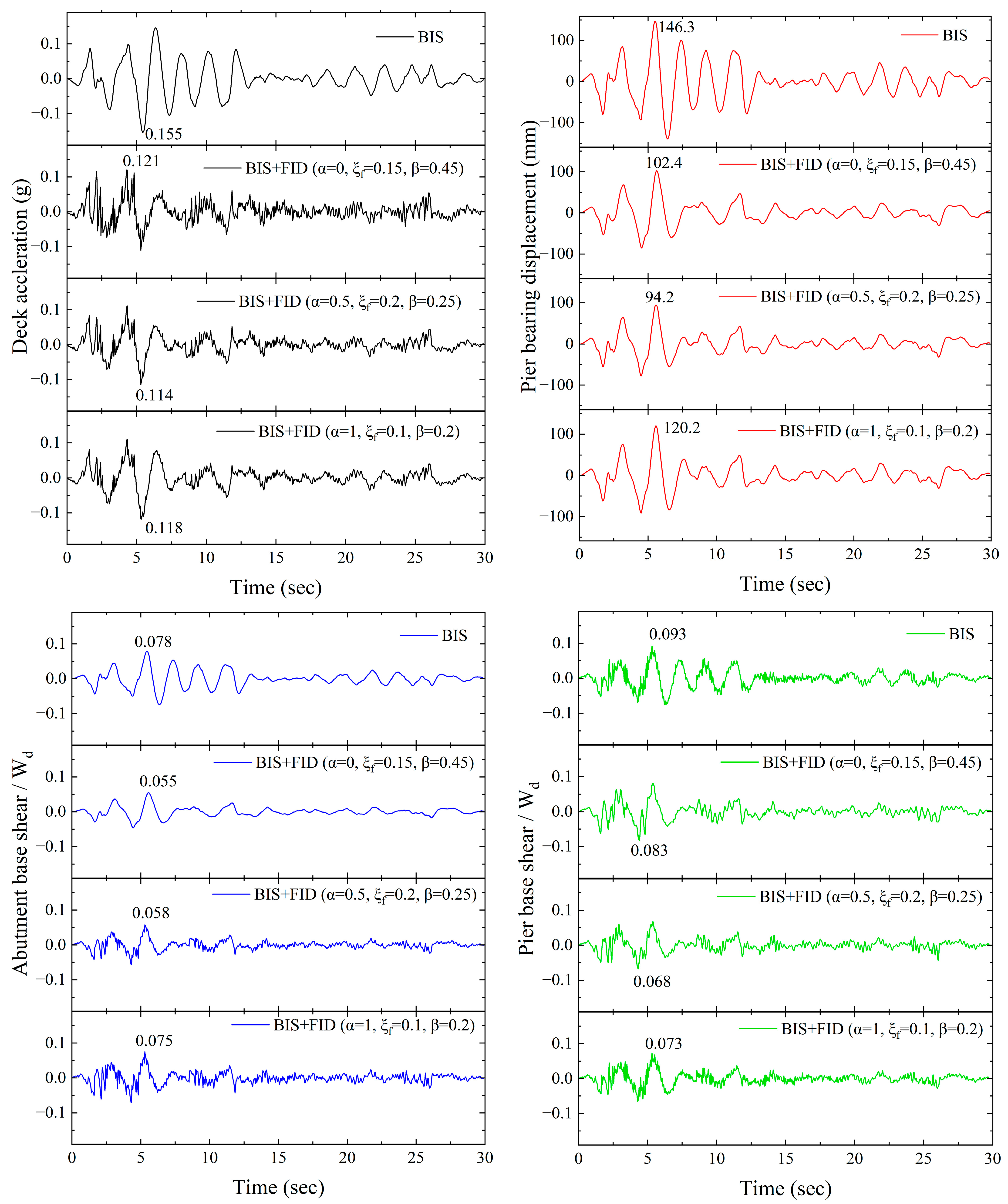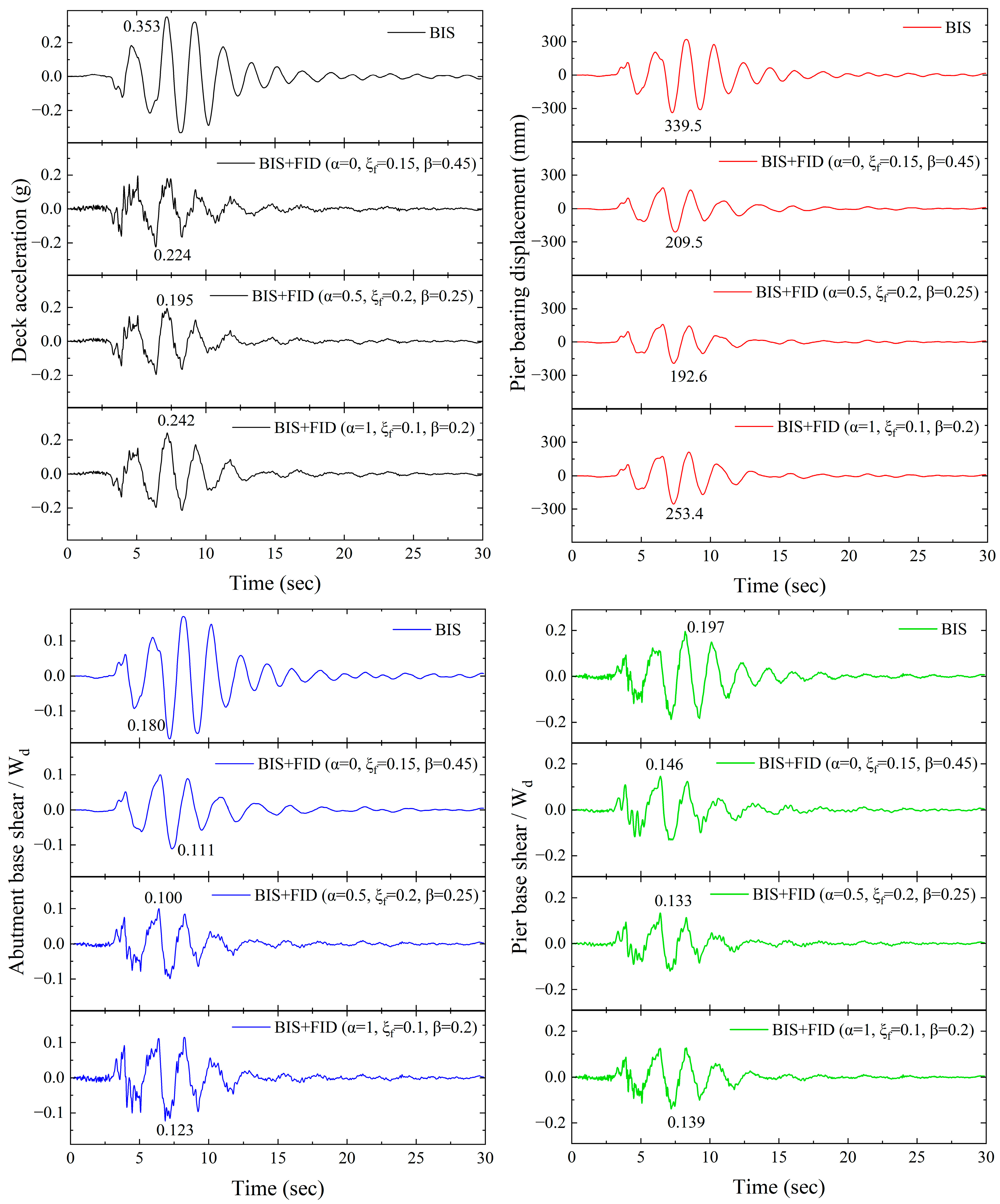 3. Seismic Response Results of the Isolated Bridge Equipped with FID