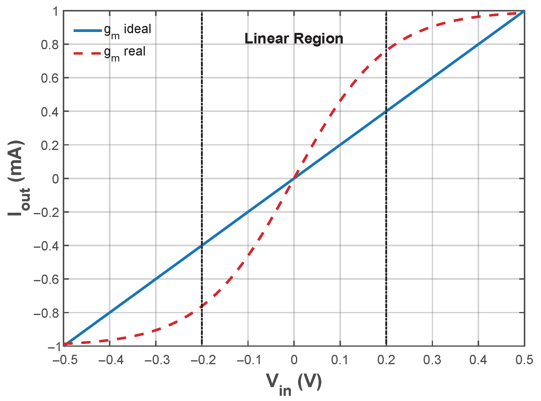 characterization does not ensure constant transconductance across a linear region, as the one shown in