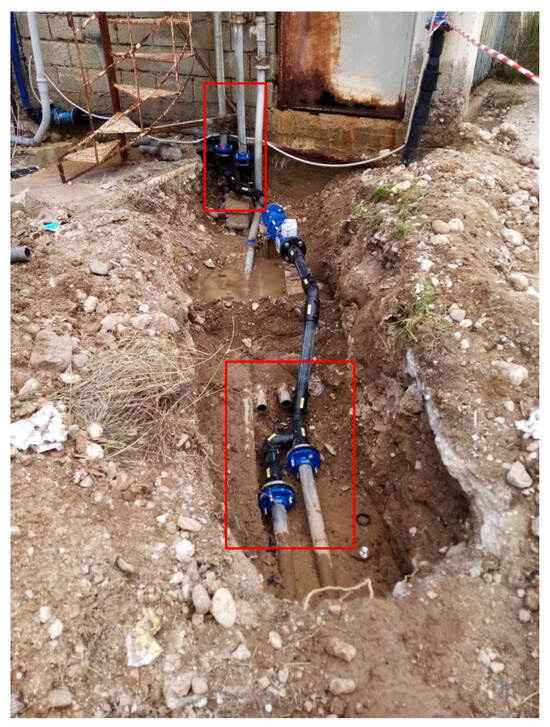 This study focuses on two particular pipeline connections located in the municipal WDN of the city of Patras (Greece). These pipeline junctions are referred to as Connection A and Connection B, for brevity. They are both network nodes where the main intersects second-order pipelines, distributing flow in several directions. These connections were cited by the engineers of the Municipal Enterprise of Water Supply and Sewerage of Patras (MEWSSP) as problematic, where they observed an imbalance of flow distribution under normal operational conditions. Through field measurements and data acquired by means of the SCADA system, it became evident that the straight-through outlet pipe of the respective stations always carried most of the flow, while the rest of the pipes, serving neighboring zones, carried much lower flow rates, leading to consumer complaint reports.