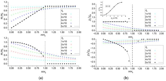 These two curves are plotted in Figure 5b. It can be pointed out that, at H = Ha, there was no susceptibility calculated. In fact, plotting the angle dependency of E for different values of field H could reveal this particularity, as explained in detail in Appendix A.