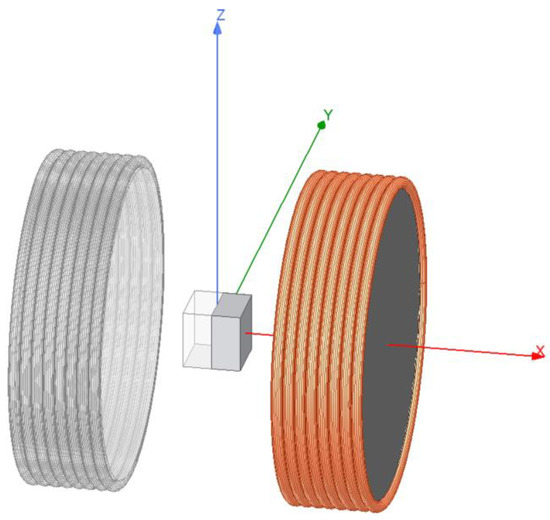 Copper with a conductivity of σ = 58∙106 S/m was used as the coil material. The ferrite-material Fi339 was selected as the ferrite core material due to its nearly constant permeability within the range for the magnetic field lower than H < 50 A/m. The cubes are subject to a magnetic hysteresis whose behavior is unknown.