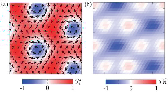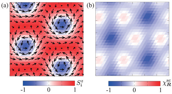 - Hayami, S.; Lin, S.Z.; Kamiya, Y.; Batista, C.D. Vortices, skyrmions, and chirality waves in frustrated Mott insulators with a quenched periodic array of impurities. Phys. Rev. B 2016, 94, 174420. [Google Scholar] [CrossRef]