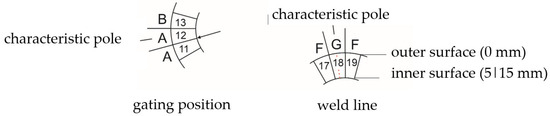 The orientation in the pole pitch is highly reduced, and the standard deviation is increased with a gating position at the pole pitch, which goes along with the reduction of the magnetic properties. Therefore, the gating system should be allocated in the middle of the pole to improve both the orientation and the magnetic properties. With respect to the gating system, the orientation is slightly improved in terms of the two-pinpoint system, which does not agree with the results in terms of the magnetic properties, as the remanence (BR) is improved in terms of the umbrella system.
