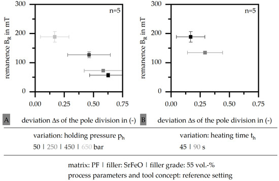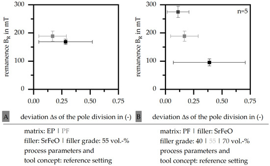 Figure 5 shows the influence of the matrix material (A) and the filler grade (B) on the magnetic properties in terms of the remanence (B